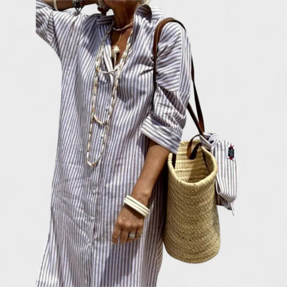 ¡La mezcla perfecta de elegancia y comodidad! Descubre el Denise, un vestido a rayas que ofrece la combinación ideal de sofisticación y confort. Su diseño clásico y elegante cuello hacen de este vestido la opción perfecta para cualquier ocasión, ya sea en la oficina, en tu tiempo libre o para un evento especial donde desees brillar.