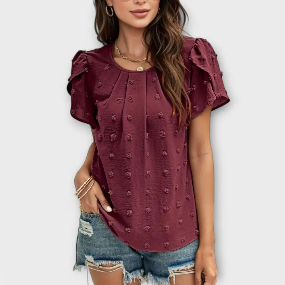 Descubre la elegancia femenina con nuestra blusa Mariana, una pieza imprescindible que fusiona un diseño de Swiss Dot con un estilo romántico y encantador. Las hermosas mangas de flores aportan un toque juguetón y refinado, perfectas para cualquier ocasión. Su cuidadosa confección no solo garantiza confort, sino también facilidad de cuidado, convirtiéndola en la opción ideal tanto para la oficina como para una cena especial.