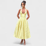 El vestido que transforma tu presencia. Diseñado para realzar la silueta con sofisticación, este vestido midi y escote halter combina elegancia clásica con un ajuste moderno. Marca la cintura y ofrece movimiento fluido en cada paso, convirtiéndose en la opción perfecta para cualquier ocasión. Atrévete a destacar con un vestido elegante que resalta tu feminidad y estilo único.